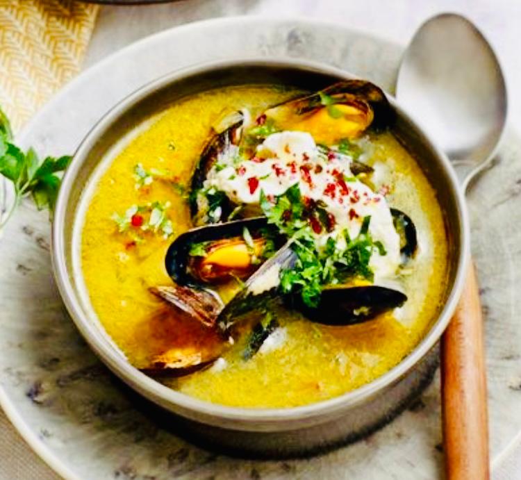 Mosselsoep met venkel, zeekraal